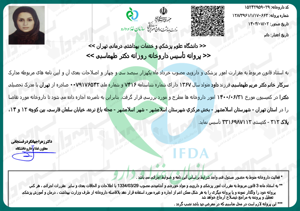 - دکتر مریم طهماسبی – مدیر مسئول و داروساز