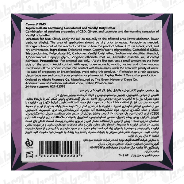 لوسیون رولدار کنورت پیاِماِس محصول تخصصی بانوان برای کاهش گرفتگی و دردهای پیش از قاعدگی و قاعدگی است؛ ترکیب همافزای کانابیدیول (CBD)، روغن ریشه زنجبیل، وانیلیل بوتیل اتر و اسانس اسطوخودوس با ایجاد گرمای ملایم، اثرات ضدالتهابی و آرامبخش، به راحتی سریع و جذب بدون چربی کمک میکند. بطری رولدار ۳۰ میلیلیتری؛ مناسب شکم، کمر و رانها.