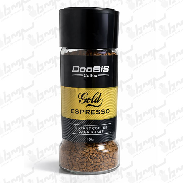 Doobis Espresso Gold Powder 100 g پودر قهوه فوری با گرانولهای درشت و طلاییرنگ است که با تلخی ملایم و طعم دلپذیر، برای تهیه سریع یک فنجان قهوه در خانه، محل کار یا قبل از فعالیتهای روزانه/ورزشی استفاده میشود.