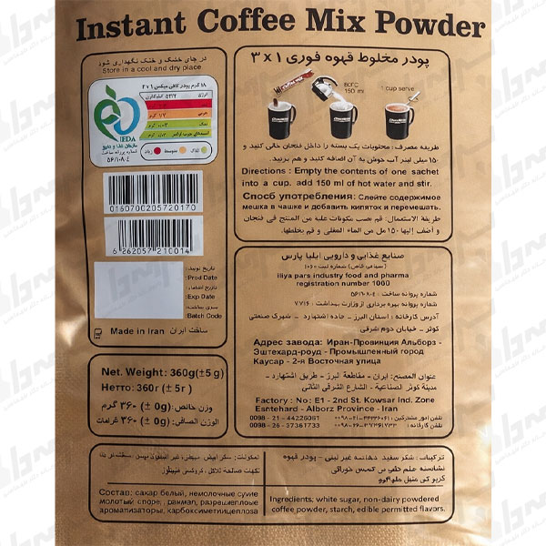 پودر همراه/خامهای، قهوه و شکر (کافی میکس 3 در 1).