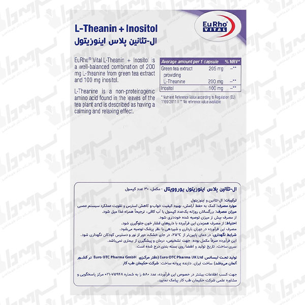 L-Theanine Plus Inositol Eurho Vital یک مکمل تخصصی برای حمایت از آرامش ذهن در فشارهای عصبی روزانه است که بدون ایجاد حس رخوت، به تمرکز و کیفیت خواب کمک میکند. این محصول در هر کپسول حاوی 200 میلیگرم ال-تئانین (از عصاره چای سبز) و 100 میلیگرم اینوزیتول است و میتواند در کنار سبک زندگی سالم، به کاهش تنش، بهبود آرامش و پشتیبانی از عملکرد طبیعی سیستم عصبی کمک کند.