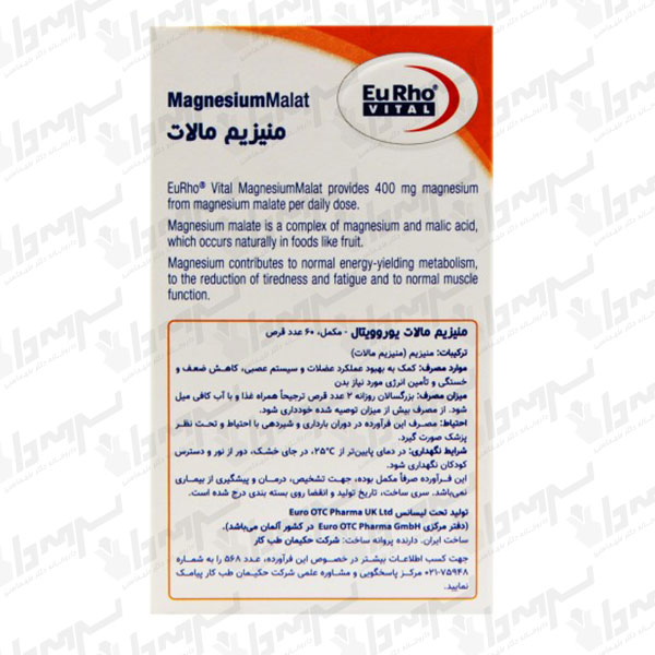 منیزیم مالات یوروویتال مکمل منیزیم حاوی ملح مالات (Magnesium Malate) است که از ترکیب منیزیم با اسید مالیک به دست میآید. این فرم به دلیل جذب و اثربخشی بالا، برای افرادی که علاوه بر کمبود منیزیم با خستگی، ضعف یا گرفتگیهای عضلانی مواجهاند گزینه کاربردی محسوب میشود. اسید مالیک در مسیرهای تولید انرژی سلولی نقش دارد؛ به همین دلیل این محصول میتواند به افزایش انرژی (ATP) و کاهش احساس کوفتگی عضلانی کمک کند.