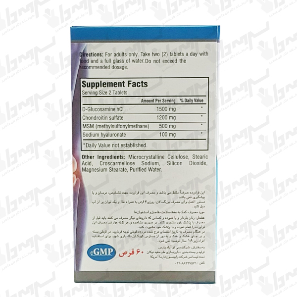 | دیگلوکزآمین سولفات هیدروکلراید | D-Glucosamine Sulfate HCl | 1500 mg | ** |
