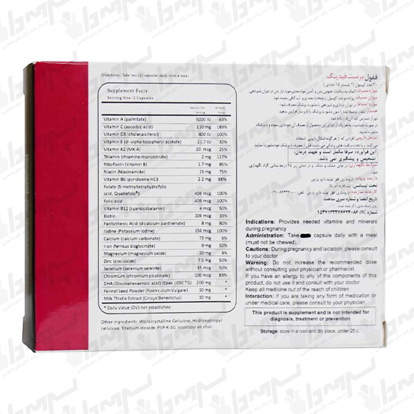 ففول برست فیدینگ مکمل تخصصی دوران شیردهی است؛ برای تأمین ریزمغذیهای کلیدی مادر شیرده (ویتامینها، آهن بیسگلیسینات با تحمل گوارشی بهتر، DHA 200mg، ید، کلسیم، روی و …) که به حفظ انرژی و خونسازی، پشتیبانی از کیفیت شیر و سلامت عمومی مادر کمک میکند.