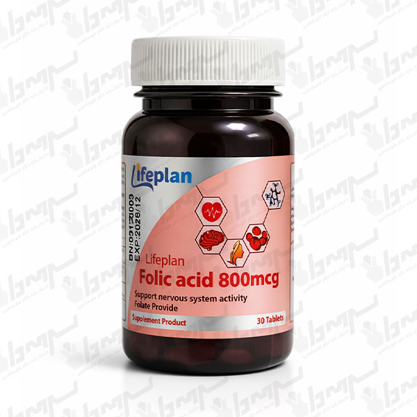 فولیک اسید 800 لایف پلن مکمل حاوی ۸۰۰ میکروگرم ویتامین B9 در هر قرص است که به خونسازی و پیشگیری از کمخونی مگالوبلاستیک کمک میکند، در متابولیسم هموسیستئین نقش دارد و برای دوران پیش از بارداری و بارداری (با نظر پزشک) جهت کاهش خطر نقص لوله عصبی جنین کاربرد مهمی دارد.