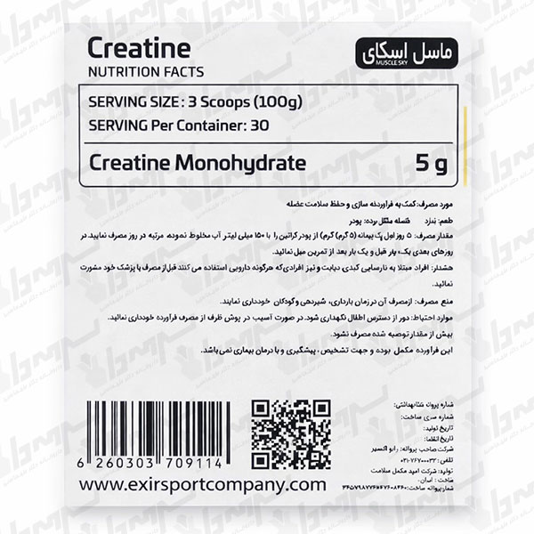کراتین ماسل اسکای ۳۰۰ گرم یک مکمل ورزشی حاوی کراتین مونوهیدرات خالص است که برای کمک به افزایش قدرت و توان عضلات، حجمدهی و ریکاوری سریعتر پس از تمرینات سنگین طراحی شده. دوز پیشنهادی روزانه این محصول ۵ گرم کراتین مونوهیدرات است و میتواند گزینهای کاربردی برای ورزشکاران قدرتی، بدنسازان و تمرینات انفجاری باشد.