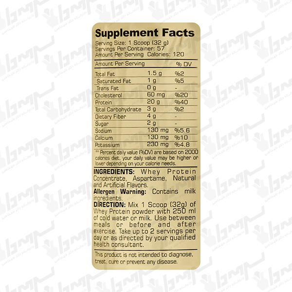 در هر ۳۲ گرم، ۲۰ گرم پروتئین باکیفیت از WPC فراهم میشود.
