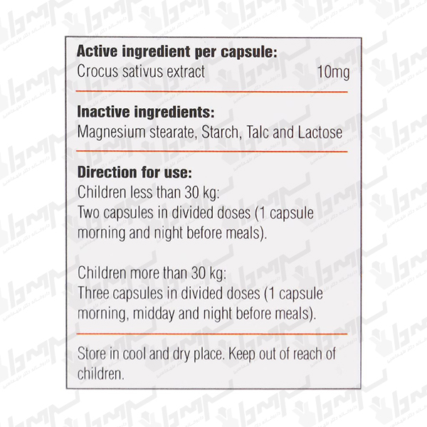 | عصاره خشک زعفران | Crocus Sativus Extract | 10 mg | ** |