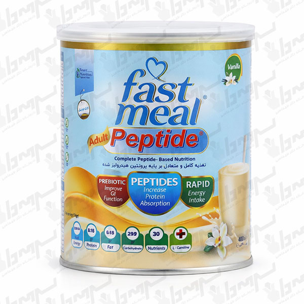 فست میل پپتاید یک فرمولاسیون کامل و متعادل بر پایه پروتئین وی هیدرولیز شده است که برای تأمین سریع انرژی و پروتئین و همچنین فراهم کردن ویتامینها و املاح در بزرگسالان طراحی شده است. این محصول با طعم وانیلی و با ویژگیهایی مثل فاقد گلوتن و لاکتوز بودن، میتواند برای افراد دچار سوءتغذیه یا مشکلات گوارشی و سوءجذب مناسب باشد و در شرایط خاص مانند بیماران سرطانی، بعد از جراحی یا بستری در ICU، صرفاً تحت نظر پزشک استفاده میشود.