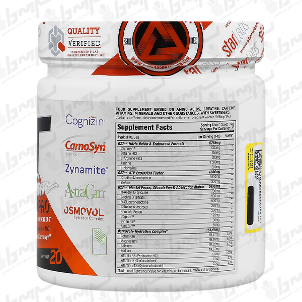 G2T Go2Train Pro پریورکاوت پیشرفته با ماتریس پمپ، تمرکز، انرژی و هیدراتاسیون؛ طراحیشده برای افزایش استقامت، قدرت، اتصال عصب–عضله و ریکاوری. تحت لیسانس StarLabs Nutrition (اسپانیا) و تولید ایران؛ طعم آدامس بادکنکی، وزن خالص ۲۸۰ گرم.