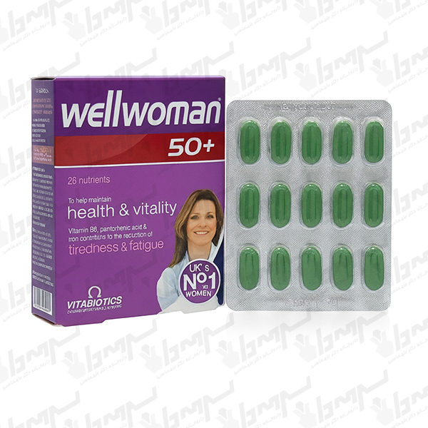 مولتیویتامین +Wellwoman 50 ویژهٔ بانوان بالای ۵۰ سال، با مجموعهای از آنتیاکسیدانها (لوتئین، چای سبز، کیوتن)، ویتامینها و مینرالها (کروم، سلنیوم، زینک، ویتامینهای گروه B، D، E و …) برای کاهش خستگی، پشتیبانی از ایمنی، قلب و عروق، سیستم عصبی و بینایی در دوران پیش/پس از یائسگی طراحی شده است.