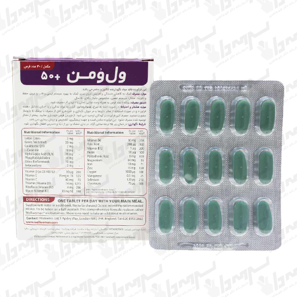 برای خرید و اطلاع از قیمت قرص ول وومن ۵۰+ ویتابیوتیکس (۳۰ عدد) از وبسایت داروخانه سرمهدان بازدید کنید. تمامی قیمتها در داروخانه سرمهدان بهروز هستند.